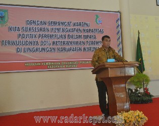 Sekda mengatakan.”Partisispasi perempuan dalam bidang politik di kabupaten natuna secara umum bisa diliat dari jumlah anggota legislatif, dimana pada pemilu tahun 2014 hanya satu orang satu orang perempuan dari 20 anggota DPRD yang ada,