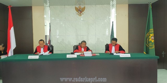 Persidangan dipimpin Ketua majelis hakim, DR Erwin Mangata Malau SH MH dengan anggota dua orang hakim Ad Hoc yakni Bagus Irawan SH MH dan DR Suparno SH SE MH, DR Suryadi SHM MH dibantu panitera pengganti Abbas.”Menetapkan kedua terdakwa tetap ditahan,”tegas DR Erwin Mangata Malau SH MH yang juga ketua PT Kepri ini.