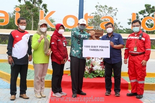 Dumai, Radar Keprii- Dalam rangka mendukung upaya Pemerintah melakukan penghijauan di Kota Dumai, Pertamina melalui PT Kilang Pertamina Internasional (PT KPI) Refinery Unit (RU) Dumai serahkan 1.000 bibit Pohon Tabebuya, Kamis (31/03) di Taman Bukit Gelanggang Kota Dumai.