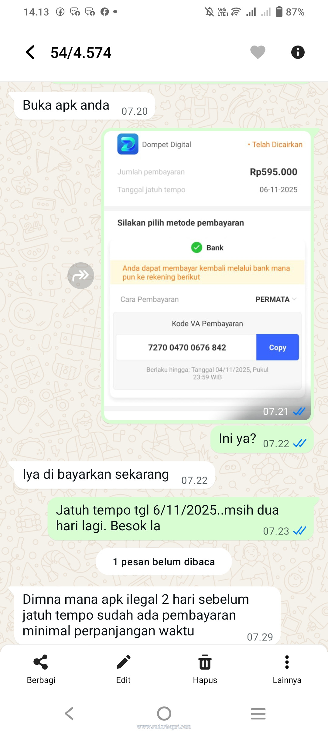 Ditambahkan FH, dirinya terus di desak meminta dibayar ke rekening aplikasi (apk) pinjol ilegal tersebut dengan ancaman jika tak bayar akan dialihkan penagihan ke nomor kontaknya dengan tujuan mempermalukan dirinya.”Saya sedang kumpulkan semua bukti untuk mengambil langkah hukum, termasuk melaporkan ke Mabes Polri, OJK, BI dan PPATK serta pihak-pihak berwenang lai agar pinjaman online ilegal ini ditindak tegas.”ujarnya.