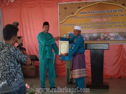 Yang sungguh luar biasa Kepala TPQ Al-Kautsar Desa Sepempang H. Zar’i, memberikan hadiah kepada dua santri yang berakhlaq baik.