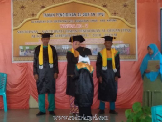 Natuna,Radar Kepri-Wisuda Santri TPQ Al-Kautsar Desa Sepempang Bunguran timur laut Minggu (07/04) pagi ini berlangsung meriah.