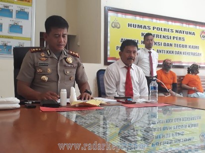 Kali ini pelaku penyalahgunaan narkoba yang berhasil ditangkap menurut Kapolres Natuna AKBP Nugroho Dwi Karyanto SIK, didampingi Sat Narkoba Ramlan Kalit, saat jumpa pers Senin, (30/07)tadi pagi, oknum (PNS) di lingkungan Pemda Natuna, dengan barang bukti berupa 2,6 gram sabu, bong, dan hand phone.