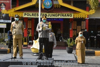 Pada kesempatan ini Kapolres Tanjungpinang AKBP Muhammad Iqbal, SH, SIK, M.Si juga menyampaikan bahwa kegiatan ini merupakan bagian penting dari Operasi Aman Nusa untuk penanganan covid-19 di setiap daerah secara massal, terkait dengan saat ini penyebaran covid-19 menjadi perhatian serius dan telah mewabah ke berbagai penjuru dunia yang salah satunya di Indonesia, juga Untuk Personil TNI-Polri, Pemda dan juga seluruh elemen masyarakat agar selalu menjaga kesehatan, berolah raga teratur, mencuci tangan, makan makanan bergizi, dan tidak berkumpul di tempat keramaian, selain itu juga Pemerintah telah menetapkan kebijakan untuk menjaga jarak aman (physical distance) antar sesama. Untuk itu masyarakat dihimbau untuk tidak melakukan aktivitas yang menimbulkan kerumunan massa dan melakukan pembatasan aktivitas di luar, dan sedapat mungkin menahan diri untuk berdiam di rumah, Polri dengan berlandaskan asas keselamatan rakyat yang merupakan hukum tertinggi. Akan melakukan tindakan tegas bahkan dengan ancaman hukuman pidana sesuai Undang-Undang, bagi siapapun yang tidak mengindahkan kebijakan pemerintah, tanpa alasan yang jelas, masih melakukan aktivitas di luar yang menimbulkan kerumunan atau kumpulan dan mengundang keramaian Semoga Tuhan Yang Maha Kuasa memberikan rahmat kepada kita semua atas dedikasi yang kita lakukan dan mari bersama kita bersatu untuk mencegah penyebaran Covid-19.