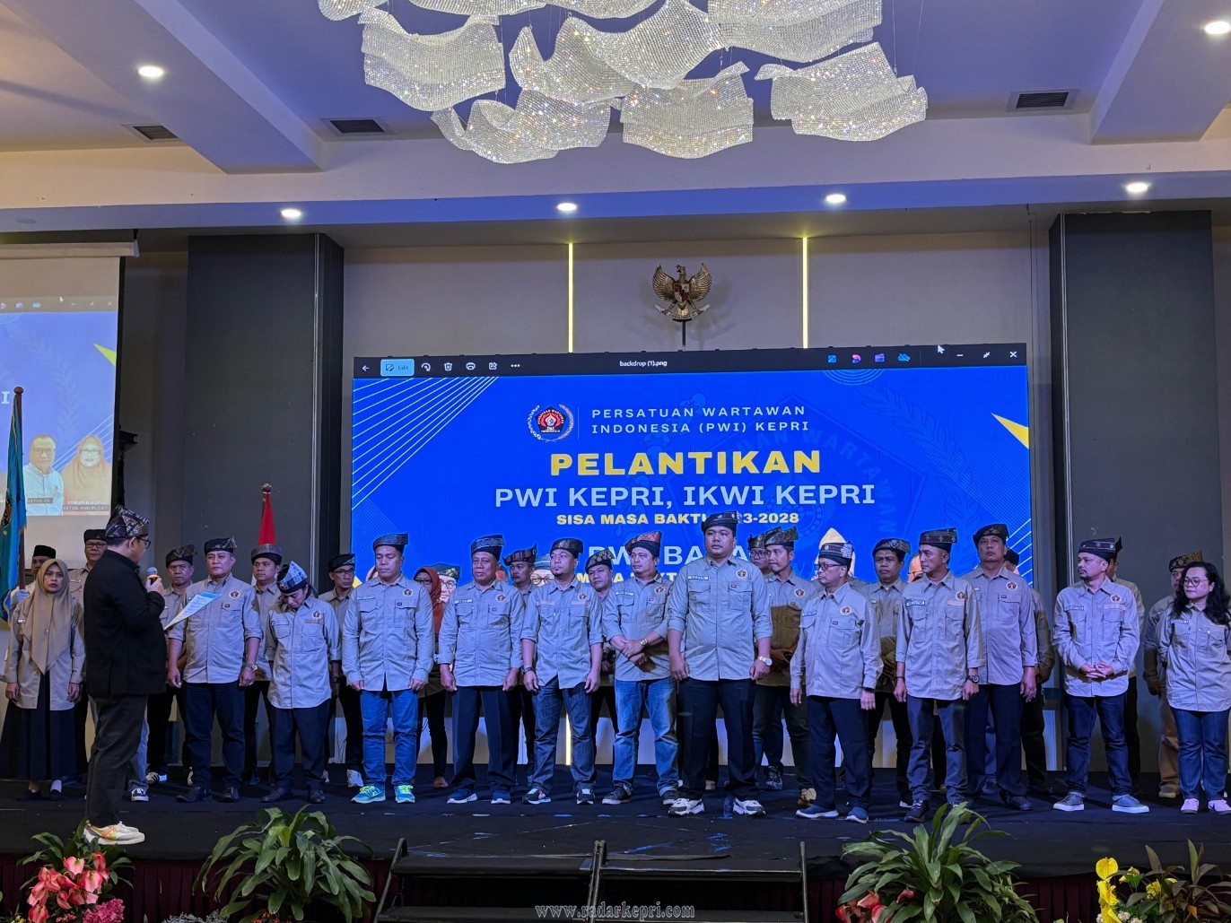 Batam, Radar Kepri-Ketua Umum Persatuan Wartawan Indonesia (PWI) Pusat, Zulmansyah Sekedang, melantik jajaran pengurus PWI Provinsi Kepulauan Riau, PWI Kota Batam, serta Ikatan Keluarga Wartawan Indonesia (IKWI) Kepri di Ballroom Planet Holiday Hotel, Rabu (7/5).