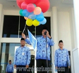 Hadir dalam upacara yang dimulai pada pukul 08:00 Wib tersebut, Assisten II Hardinansyah Razani, Assisten III Izwar Asfawi, para Kepala Dinas dan Badan, PNS, PTT, Guru dan siswa siswi dari tingkat SD hingga SLTA. (Herman)