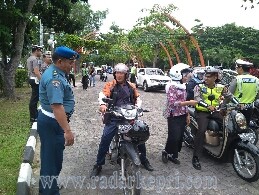 Tanjungpinang, Radar Kepri-Satuan Lalu Lintas Polres Tanjungpinang bersama TNI melakukan razia kendaraan roda dua dan empat disimpang bundaran Pamedan, Tanjungpinang, Rabu (25/10/2017).