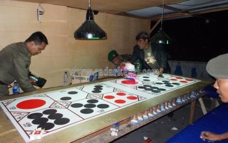 Tim gabungan kemudian menuju kawasan pujasera Suka Berenang, tepatnya dibelakang Cafe Dahlia, dilokasi ini tim gabungan menemukan belasan pemain berhamburan melarikan diri. Petugas gabungan kemudian mengumpulkan sejumlah uang, lapak dan barang bukti lainnya. Sedangkan bangunan dari kayu dan dinding triplek tersebut dirobohkan Satpol PP, disaksikan anggota TNI dan Polri.