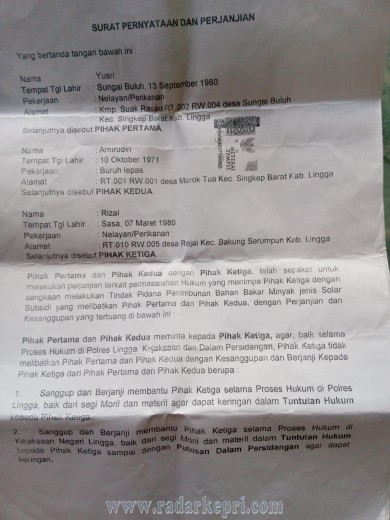 Hingga berita ini diterbitkan, redaksi Radar Kepri belum berhasil mendapatkan konfirmasi dari Amirudin dan Yusri terkait tudingan dan isi perjanjian yang dimaksud Rizal.(Aliasar)