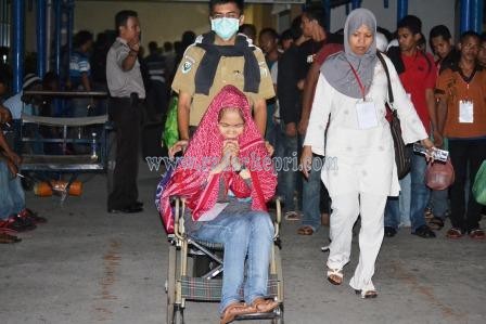 Tanjungpinang, Radar Kepri-Muhayba (45) asal Surabaya satu dari 316 orang, Tenaga Kerja Indonesia (TKI-B) di deportasi dari Pemerintah Diraja Malaysia tiba di Pelabuhan Sri Bintan Pura Tanjungpinang, Kamis (25/09) terpaksa didorong pakai kursi roda karena mengalami sakit. Namun, belum diketahui penyakit yang diderita wanita asal Jawa Timur itu.
