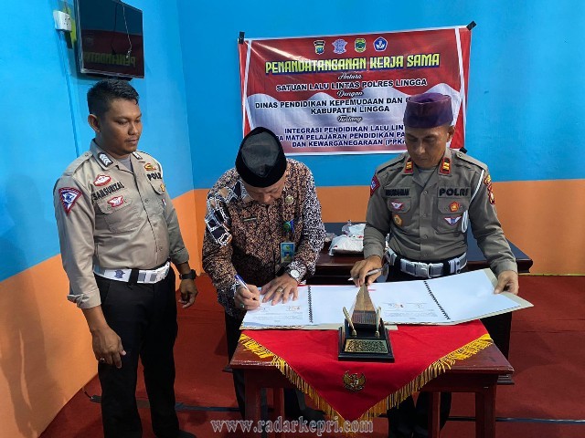 Lingga, Radar Kepri-Dinas Pendidikan Kepemudaan dan Olahraga Kabupaten Lingga, melakukan penandatanganan Nota Kesepahaman atau MoU bersama Satuan Lalu Lintas Polres Lingga.