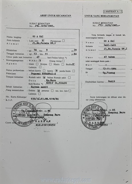 Kejahatan tidak ada yang sempurna. Itulah kalimat yang pantas dalam kasus ini. Kebenaran muncul dengan cara dan waktunya sendiri. Karena, faktanya Go Asai ternyata meninggal pada 13 November 1984 dikuatkan dengan surat keterangan kematian dengan nomor 06/470/1985 yang diterbitkan Lurah Kampung Baru saat itu, Sarno W.