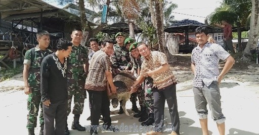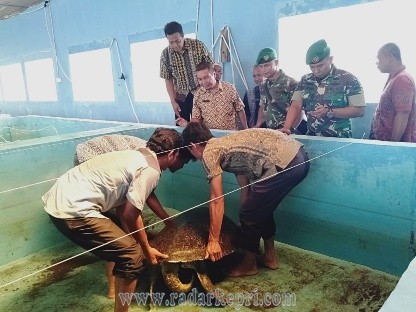 Darmanto, Agung Iskandar, dan Tarigan. Penyu tersebut diangkat dan serehkan kepada Badan Benih Ikan di Desa Sepempang Kecamatan Bunguran timur.