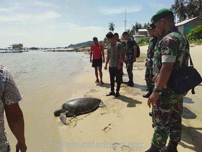 Natuna, Radar Kepri-Setelah dilakukan perawatan sekitar 4(empat) hari, seekor Induk Penyu Belimbing berbobot berat badan sekitar 50 kg kembali dilepaskan di pantai Tekuk Baruk Desa Sepempang Kecamatan Bunguran Timur Natuna oleh pihak Balai Benih Ikan (BBI) Kabupaten Natuna.