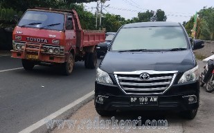 Laki-laki mengenakan jaket coklat yang belum diketahui identitasnya itu meluncur dari batu 8 menuju batu 5 mengendarai Yamaha Mio 125 warna biru dengan list putih dan nopol BP 4046 MK. Sedangkan mobil Kijang parkir dari arah yang sama. Pengemudi mobil Kijang hitam dengan nopol BP 199 AW diketahui seorang ibu-ibu berumur sekitat 40-an.