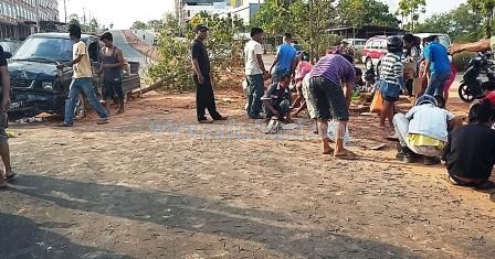 Meskipun tidak ada korban jiwa, namun supir yang enggan menyebutkan namanya itu mengaku kaget dan berusaha membanting stir ke kanan.”Saya dari batu 8 atas mau ke Dompak bang, tiba-tiba mobil hilang kendali dan menabrak pohon akasia yang ditengah jalan itu.”ujarnya setelah diamankan warga.