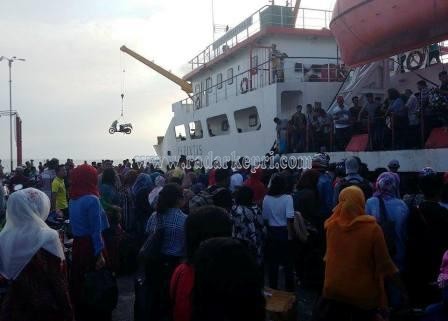 Pantauan radarkepri.com, sejak pukul 15 00 Wib, KM Sabuk Nusantara 30 telah mulai memuat penumpang dan barang-barang kiriman warga Natuna dan Anambas. Puluhan sepeda motor terlihat diangkat dengan crane yang ada dibagian depan KM Sabuk Nusantara 30.