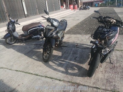 Tiga motor yang terlibat insiden tersebut adalah Honda Beat warna ungu dengan nopol BP 2527 TN dikendarai seorang ibu rumah tangga. Motor kedua, Suzuki Shogun hitam dengan nopol BP 6169 BJ dan Yamaha Scopy Biru tua berpadu warna hitam dengan nopol BP 3518 IT.”Semua kendaraan itu satu arah menuju Dompak, ada yang menabrak dari belakang. Tapi tak tau siapa, saya gak lihat kejadiannya. Cuma lihat sudah pada tergelatak di jalan.”kata wanita yang bekerja di toko Max Colour saat ditanya petugas Satlantas Polres Tanjungpinang yang mengevakuasi motor tersebut.