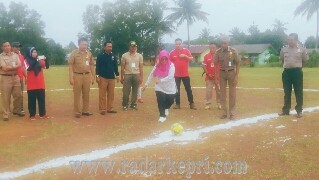 Pembukaan pekan olah raga Kecamatan Bunguran Batubi ke I itu diawali dengan tendangan bola pertama oleh Wakil Bupati Natuna Dra Hj Ngesti Yuni Suprapti.
