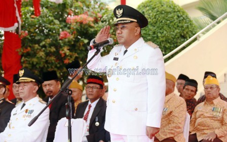 Tanjungpinang, Radar Kepri-Memperingati HUT Kemerdekaan RI ke-69, Pemerintah Kota Tanjungpinang menggelar upacara peringatan detik-detik proklamasi, Minggu (17/08) di halaman kantor Walikota Tanjungpinang.