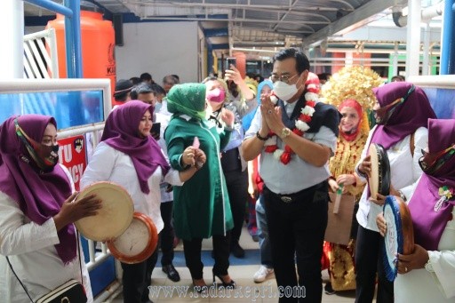 Pada kesempatan tersebut pun, Soerya Respationo mencoba menabuh kompang mengikuti irama lagu yang dibawakan oleh Ibu-ibu Majelis Taklim.