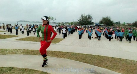 Pemerintah Kabupaten Natuna Bupati dan Wakil Bupati serta masyarakat dalam Natuna ikut bersama TNI-Polri jalan santai dan Olahraga di lapangan pantai kencana Ranai, minggu, (11/03).