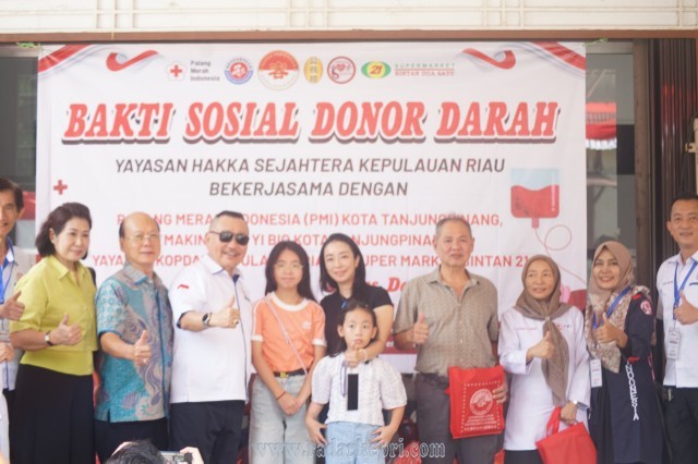 Tanjungpinang, Radar Kepri-Yayasan HAKKA Sejahtera Kepulauan Riau sukses menggelar bakti sosial donor darah bertema “Setetes Darah Menyelamatkan Satu Jiwa”, Minggu (31/8/2025). Kegiatan kemanusiaan yang berlangsung di Unit Transfusi Darah PMI Kota Tanjungpinang dr. Sudianto Sutjiwo, Jalan Rumah Sakit No. 32–33 ini menggandeng PMI Kota Tanjungpinang, Makin Cong Yi Bio, HAKKA Indonesia Kepri, Yayasan Kopdar Kepri, serta Supermarket 21 Tanjungpinang.